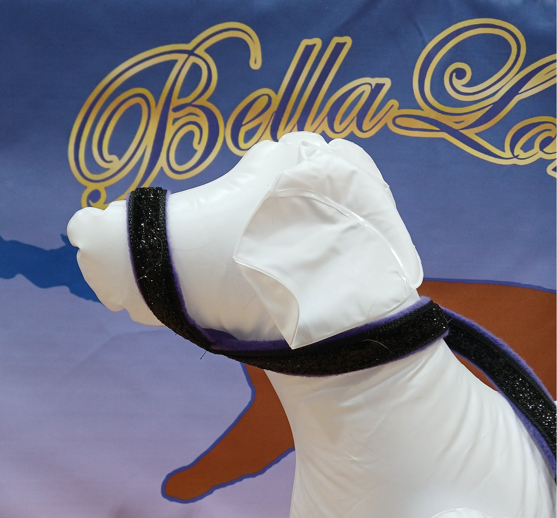 The sparkly head halter offers bling, great colors, super easy to put on and take off and is adjustable. They adjust under the chin and have a stopper so that when tension is taken off the halter they don't loosen up. They work great for the pup that pulls and have a great following among many sport dog competitors. Available in red, blue, green, black, purple and custom color combos, too. Please email with your choice.