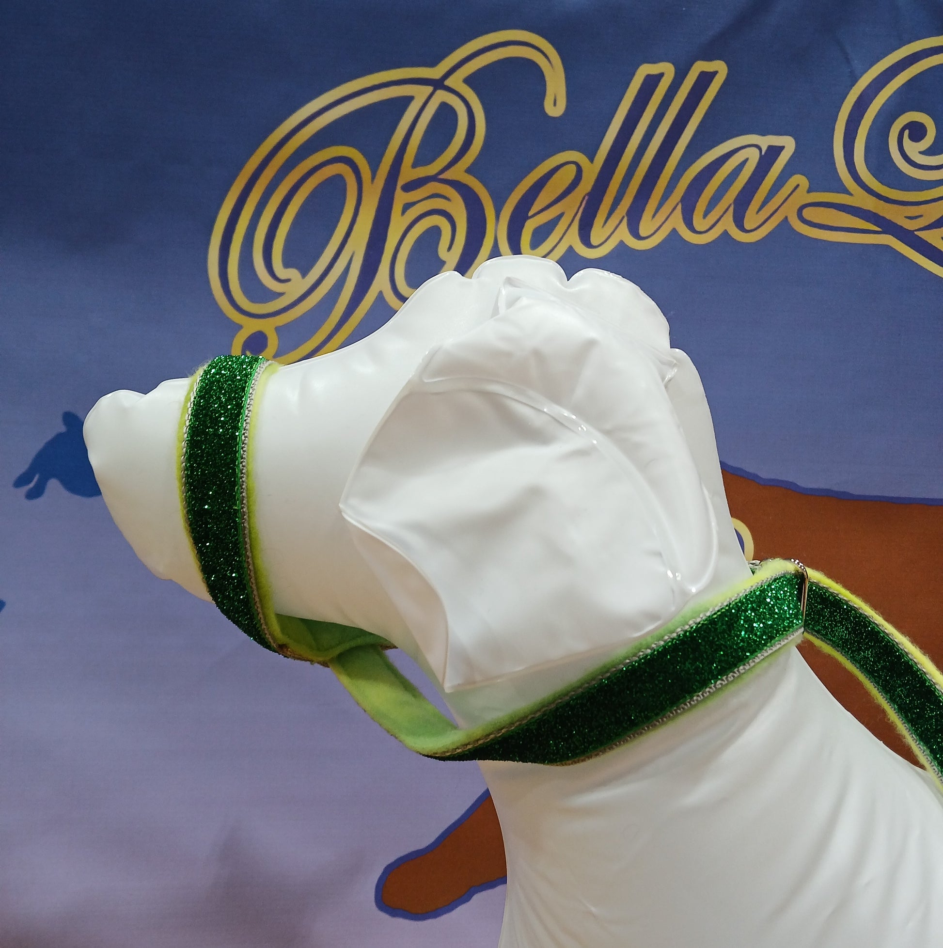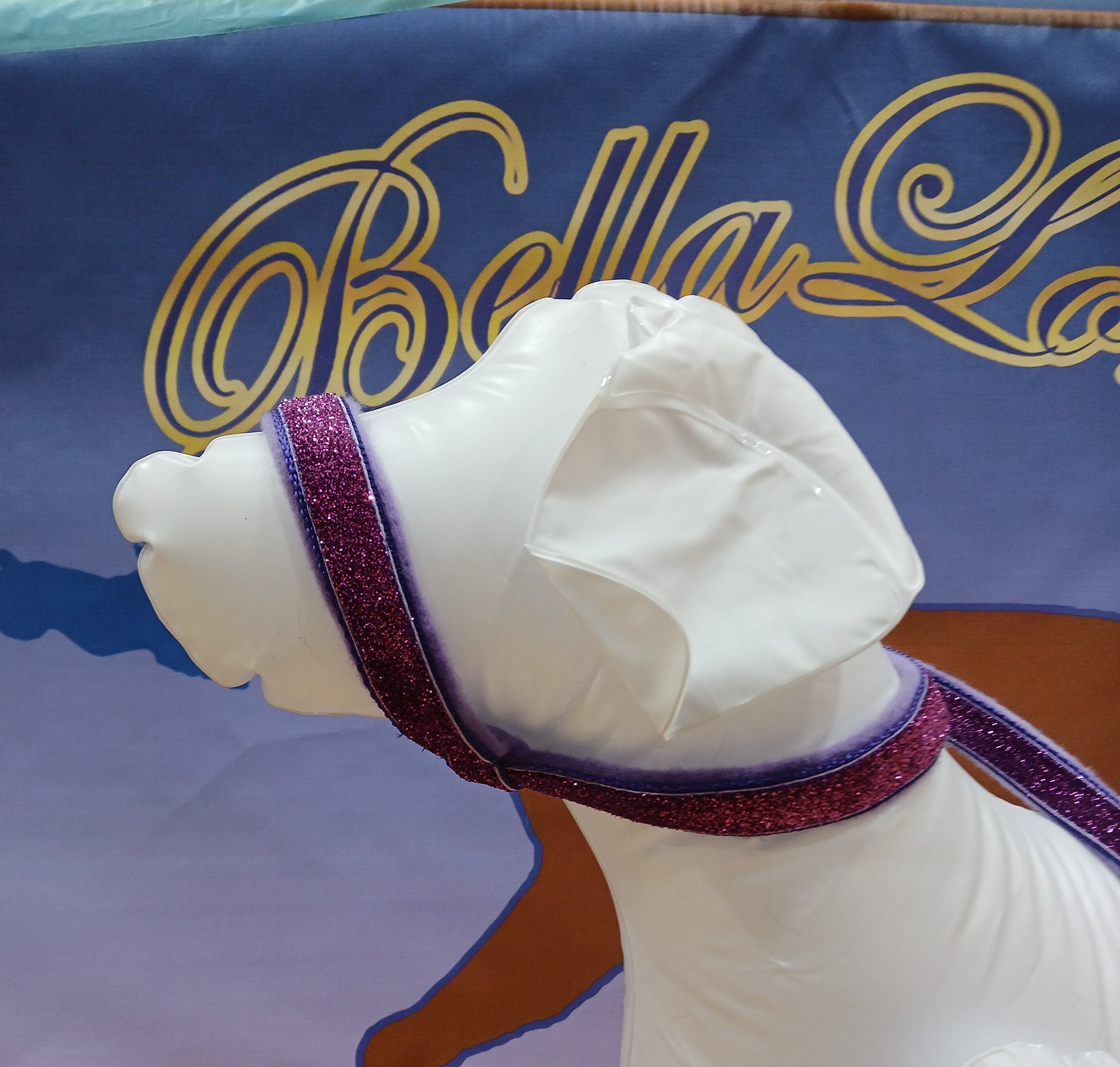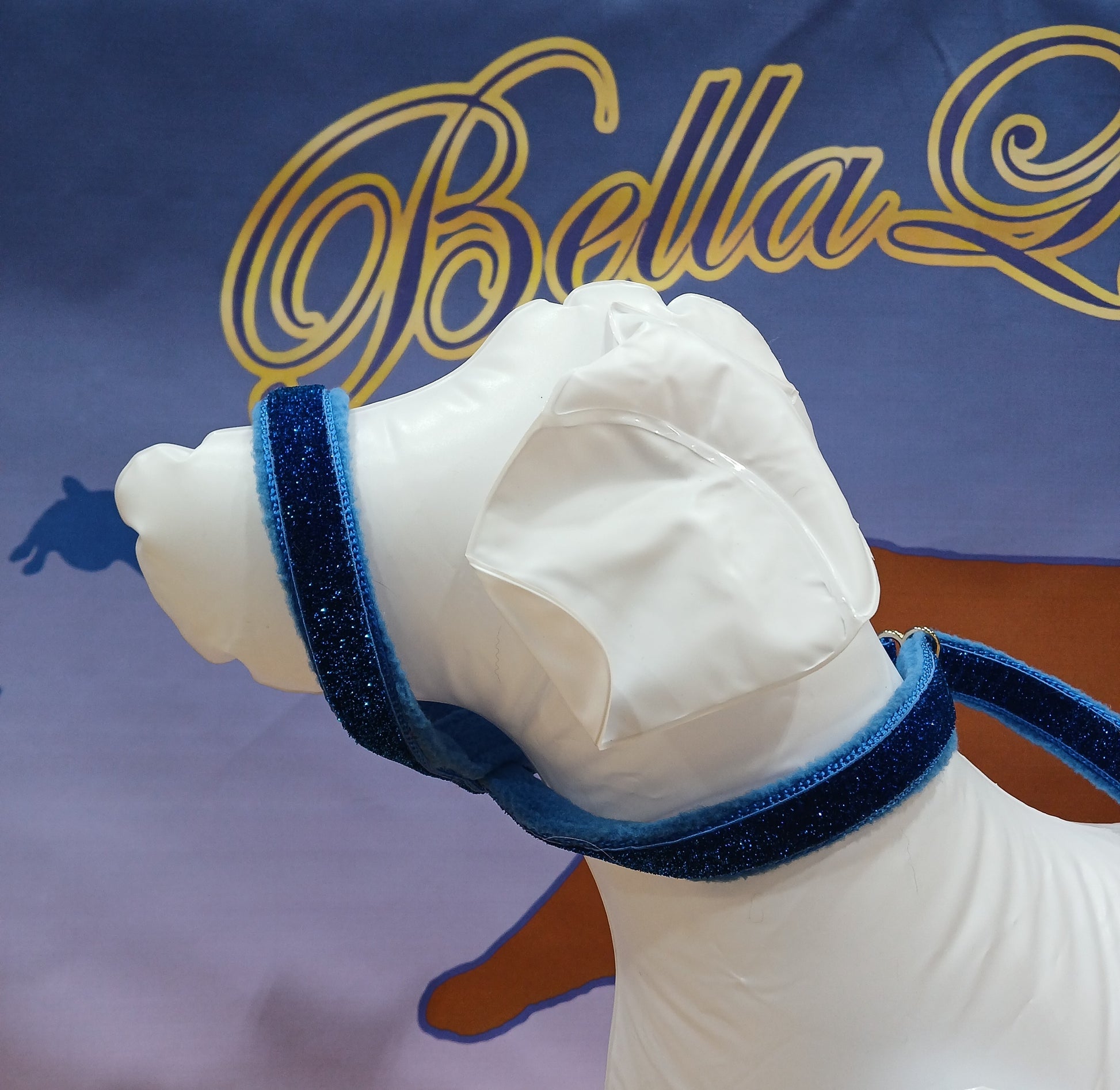 The sparkly head halter helps with pulling, is fully adjustable underneath the dog's chin and has a clip at the end for your favorite leash. The soft fleece lining provides comfort for your pup and is much less harsh than the standard head halters out there. The sparkle adds bling and distinction and is sure to turn some heads. Custom colors available - just shoot us an email and we can send options for you to choose from.