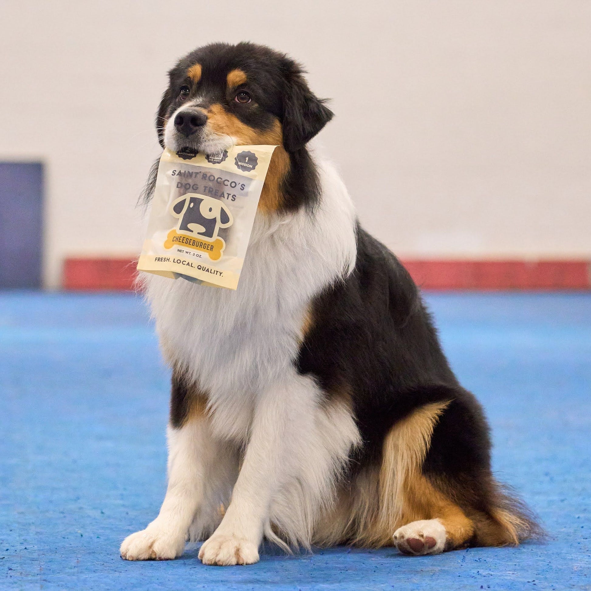 St. Rocco's Treats are made from fresh, high quality, human grade ingredients. No preservatives or artificial flavors added and only 7 ingredients! They are perfect for picky eaters and are crumb free. We carry 4 flavors - Salmon, Cod, Cheeseburger (beef and cheese) and Meat Lovers (chicken and bacon). Once opened, each bag stays fresh about 3 months without refrigeration.