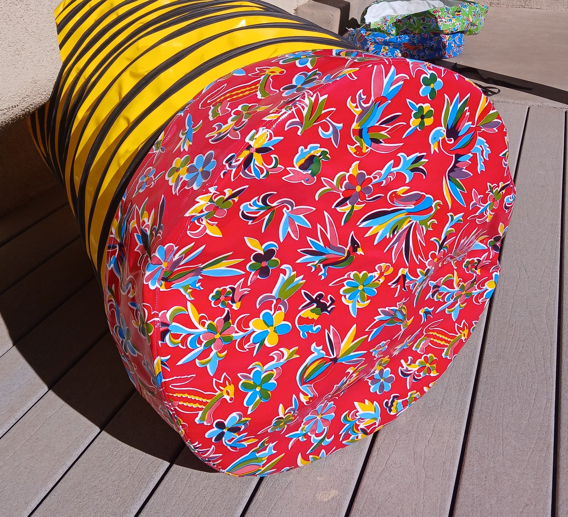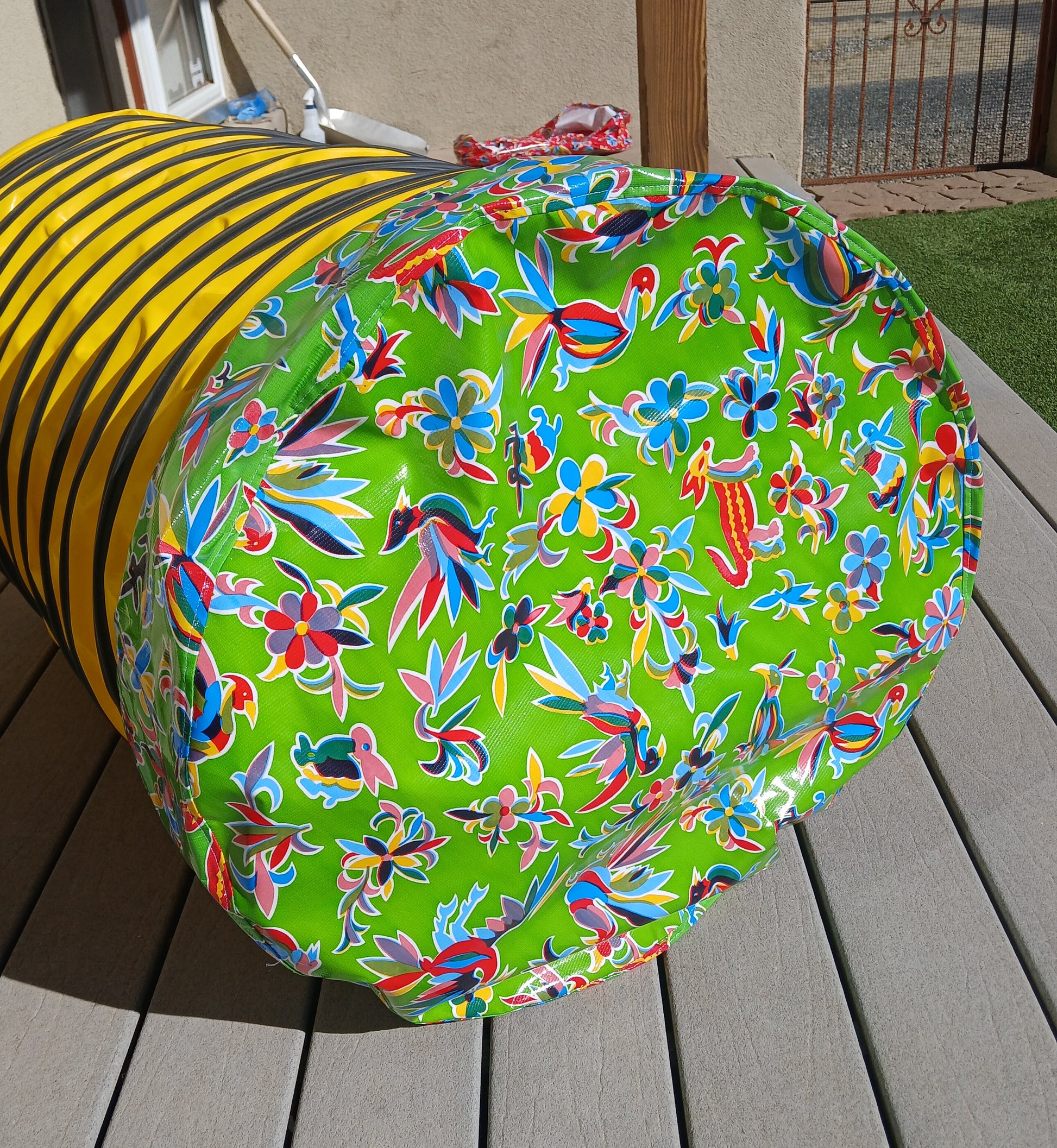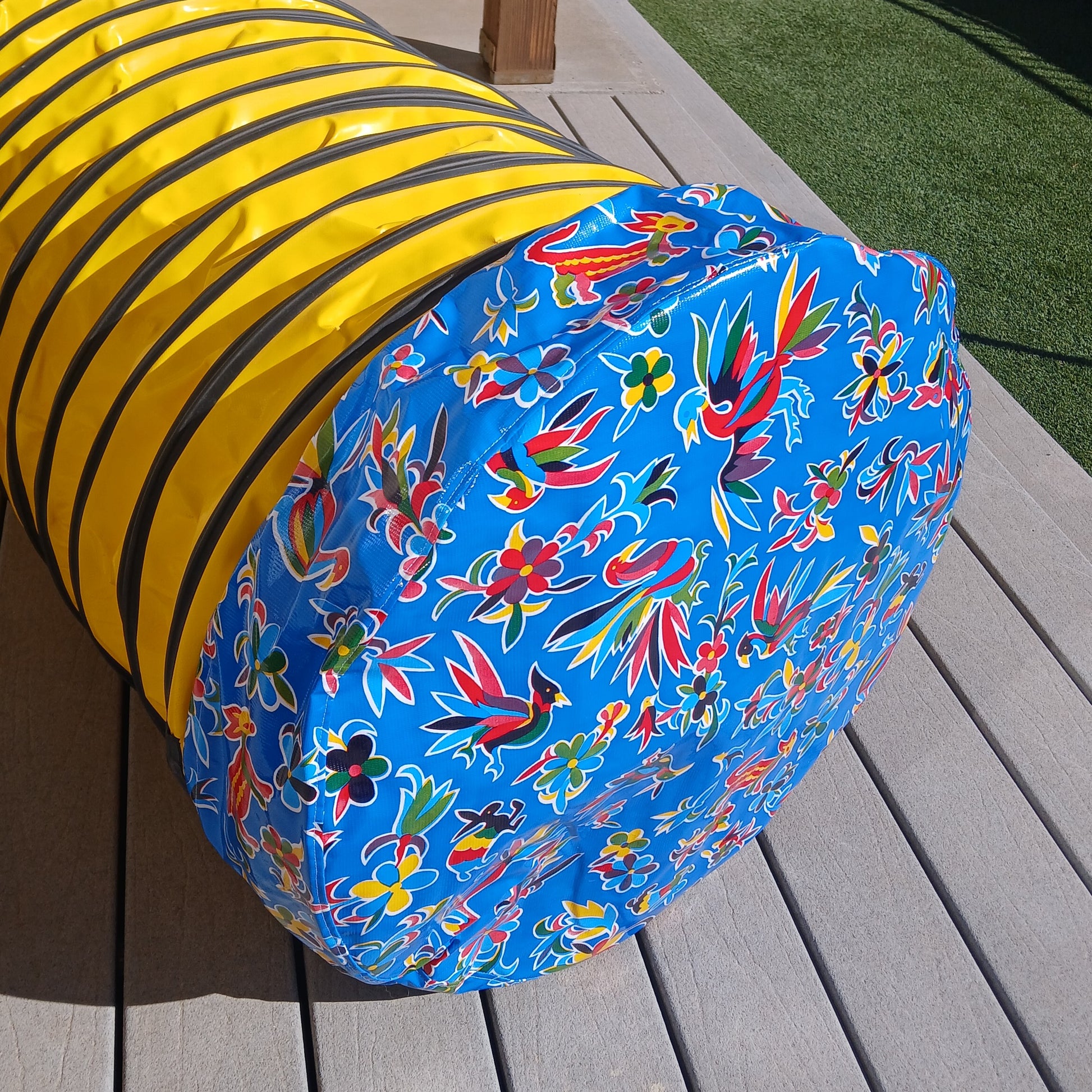 Keep those tunnels protected from wet, snow, dirt, grass clippings, feral kitties, mice and unauthorized use!! Made from heavy duty oilcloth, totally waterproof and super pretty. Easy on and easy off. These covers have a 6” depth and shock cord closure. They are light weight and easily stored. Fits 24" tunnel. Sold singly.